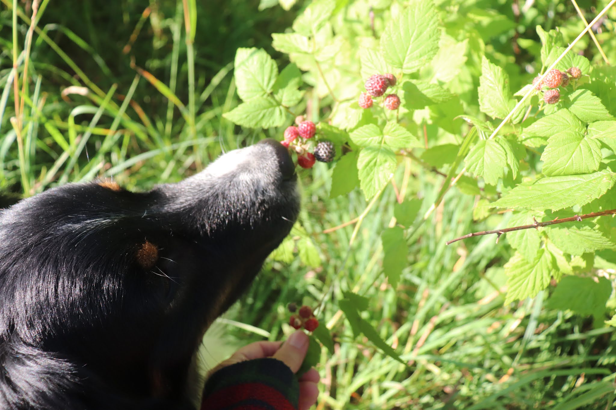 Here’s another day-at-home dog note: When I pick raspberries, little Pea accompanies me and picks a few for himself, pulling one berry at a time off the canes with his lips, just as my dog before Sarah used to do. (Many, many years ago the Artist and I had another fruit-eating dog. In fact, Barkis would eat anything -- even lemons -- but raw smelt. There he drew the line.)