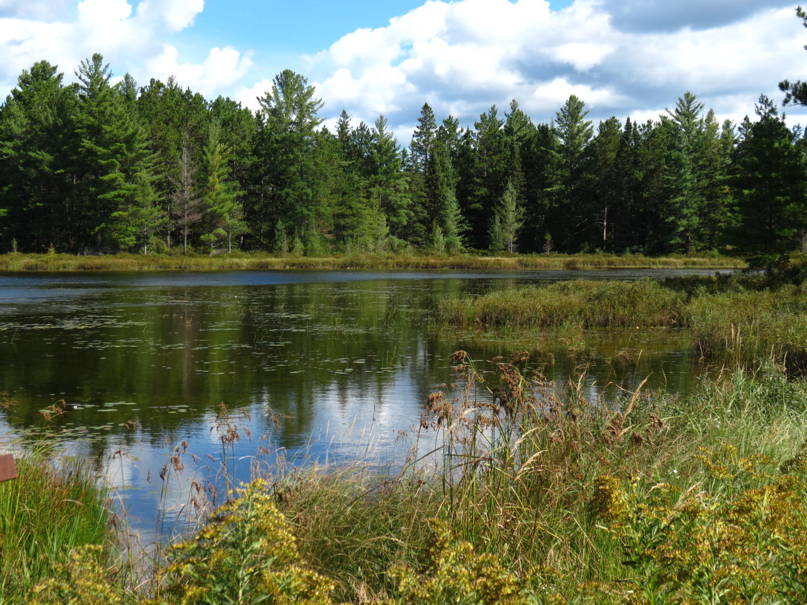 Besides sculpturally weathered stumps, a few small ponds and lakes vary the scenery. A beaver lodge we remembered from last year was still in place, but we saw no recent signs of gnawed trees along the road this year.