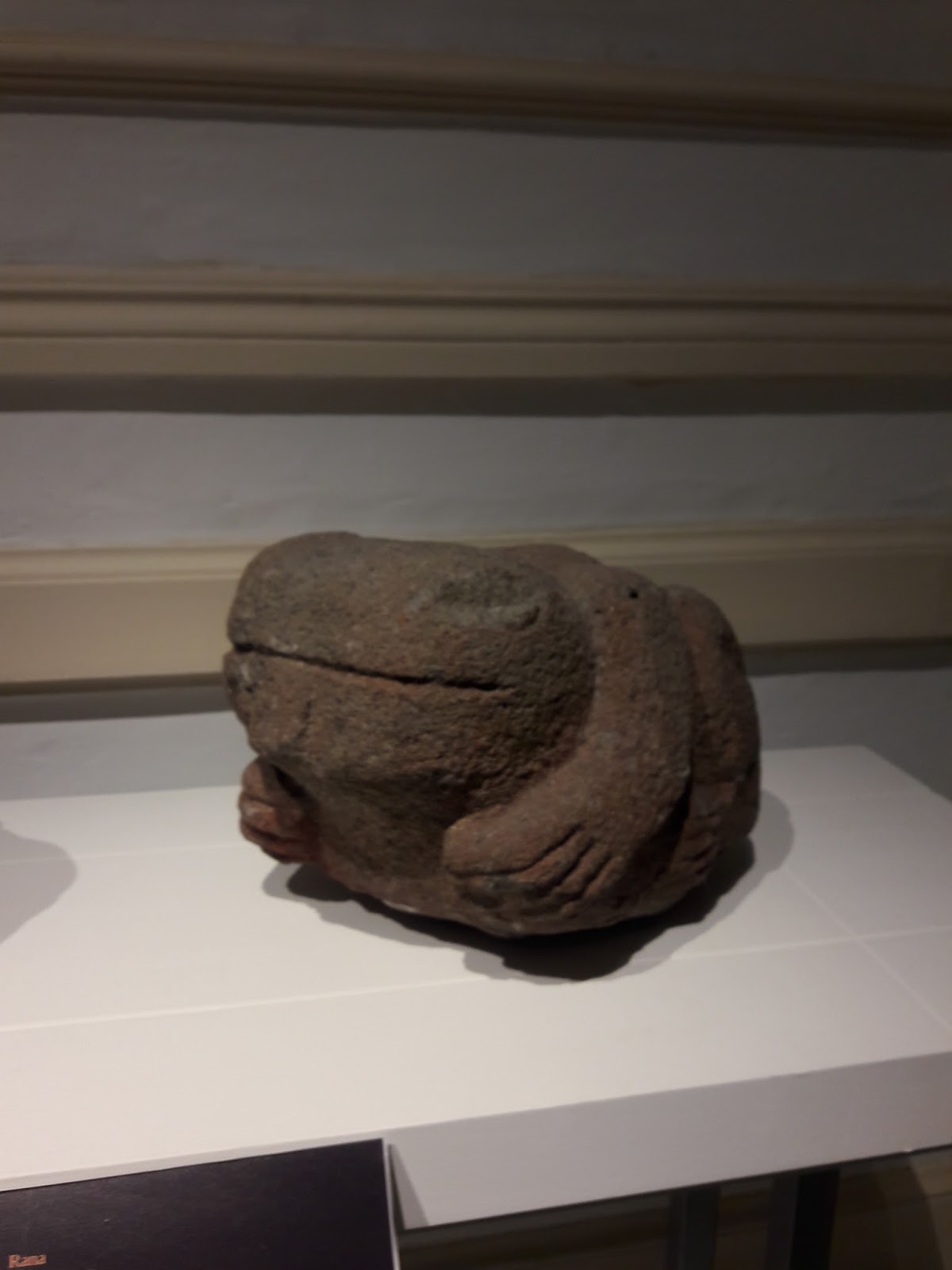 We drove to a very different part of town to tour the archaeological museum. The museum is housed in a former private residence on a wide boulevard lined with similar mansions of the rich, most still in private hands. Photography is permitted inside the museum, but my camera was acting up, so Leonore took this photograph of the stone frog for me, a little artifact I found very appealing.