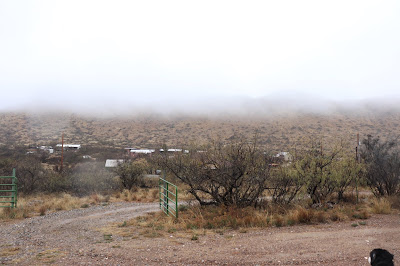 From a temperature of -10 degrees Fahrenheit at 4 a.m. on Thursday morning, Cochise County warmed up into the high 40s for the beginning of the weekend, and after dark on Saturday the rains came. Rain pattering on a metal roof reminds me of summer evenings on our front porch in Michigan, but I won’t be venturing out through wet grass with Sarah-dog here. Instead we’ll meet with mud and grit. The high desert is very gritty. Even when the ground is dry, we are always tracking in dust and tiny, hard, rough-edged stones, and when snow or rain dampen boot soles, a whisk broom at the door and a mat on which to leave shoes is the only solution.